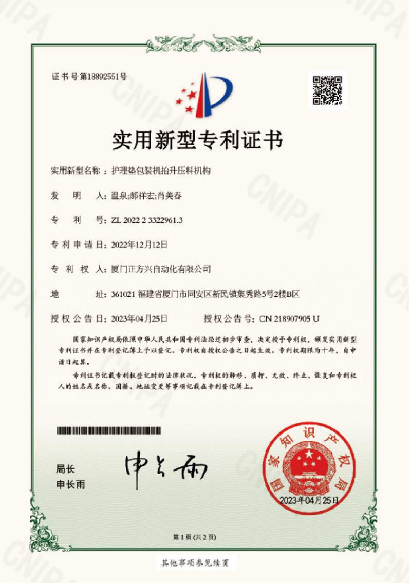 護(hù)理墊包裝機(jī)抬升壓料機(jī)構(gòu)